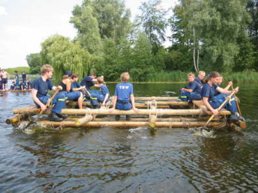 An diesem Tag haben wir uns mit der Jugend der freiwilligen Feuerwehr Reinfeld und der THW-Jugend Ahrensburg getroffen, um gemeinsam am Herrenteich ein Floß zu bauen. Da wir aber für ein Floß zu viele waren hat jeweils eine THW-Jugend mit einer Hälfte der Jugendfeuerwehr ein Floß gebaut. Als wir dann mit zusammenbauen des Floßes fertig waren, haben wir es zu Wasser gelassen und sind losgepaddelt. Da der Weg bis zum Freibad aber zu weit war, wurden wir von dem Boot der der Feuerwehr Reinfeld bis dahin geschoben. Dort angekommen haben wir dann gemeinsam ein Eis gegessen und haben uns zurückschieben lassen. Am Ufer angekommen haben wir dann begonnen das Floß wieder in die Einzelteile zu zerlegen. Im Anschluß daran wurden wir noch von der Feuerwehr zum Grillen in deren Wache eingeladen, wo wir dann den Tag gemütlich ausklingen ließen.