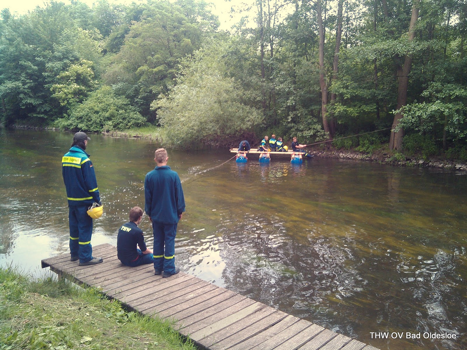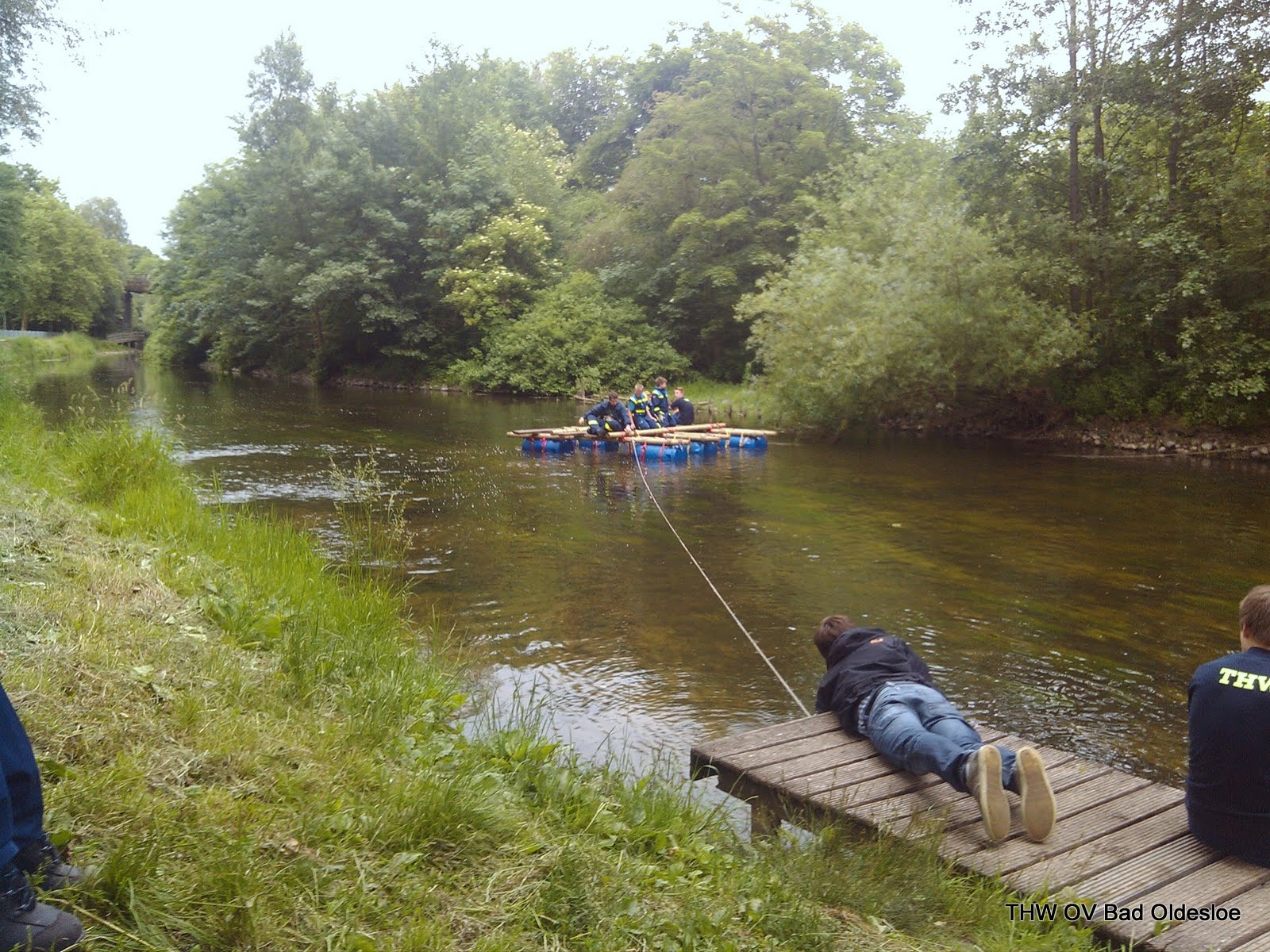 Heute ging es an die Trave. Ziel war es ein Floß zu bauen und zu Wasser zu lassen. Um Zeit an der Trave zu sparen und eine Fahrt mit dem Floß noch zu ermöglichen, wurden die Schwimm-Elemente schon beim Dienst letzte Woche vorbereitet. So ging der heutige Zusammenbau sehr schnell von statten.