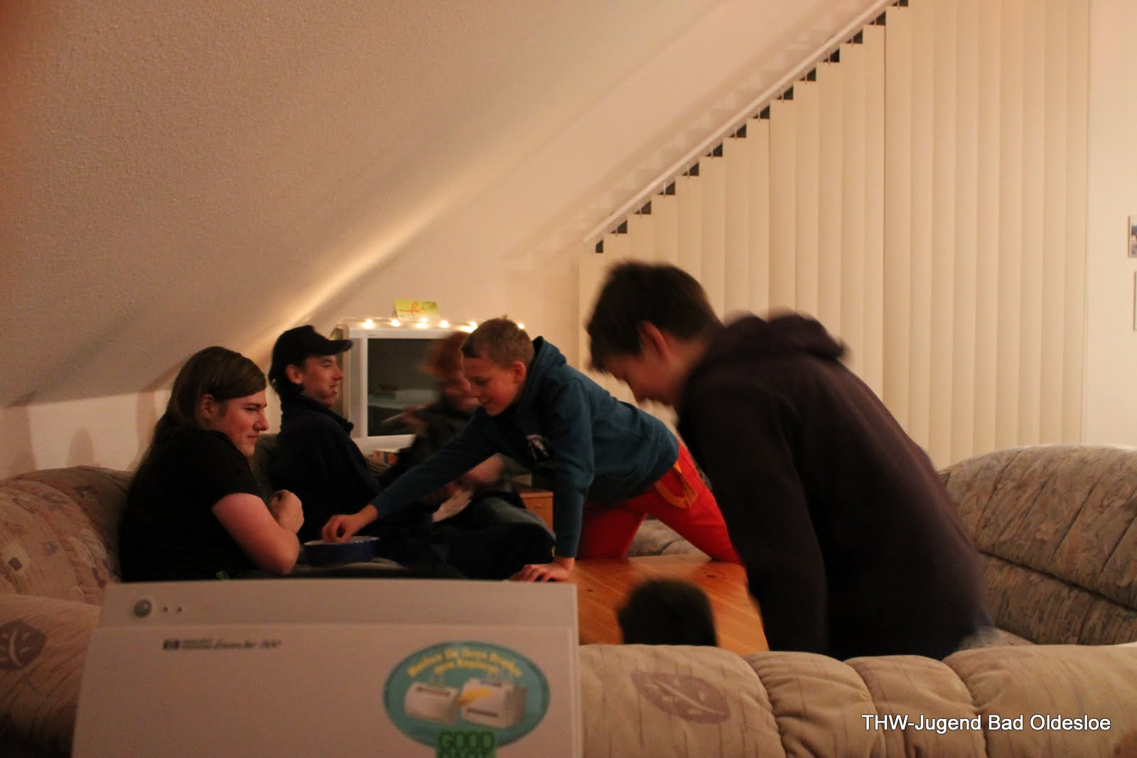 An diesem Samstag und Sonntag feierte unsere Jugendgruppe Weihnachtsfeier. Wie auch schon im vergangenen Jahr, entschieden wir uns, im Anschluss im Ortsverband zu übernachten. In diesem Jahr konnten wir die Weihnachtsfeier fast komplett im Jugendgruppenraum feiern. Dank Heino, einem Reservehelfer des TZ, der uns den Herd wieder an Strom angeschlossen hatte, konnten wir unsere Küche endlich wieder komplett nutzen. Nur geschlafen wurde im Ausbildungsraum.