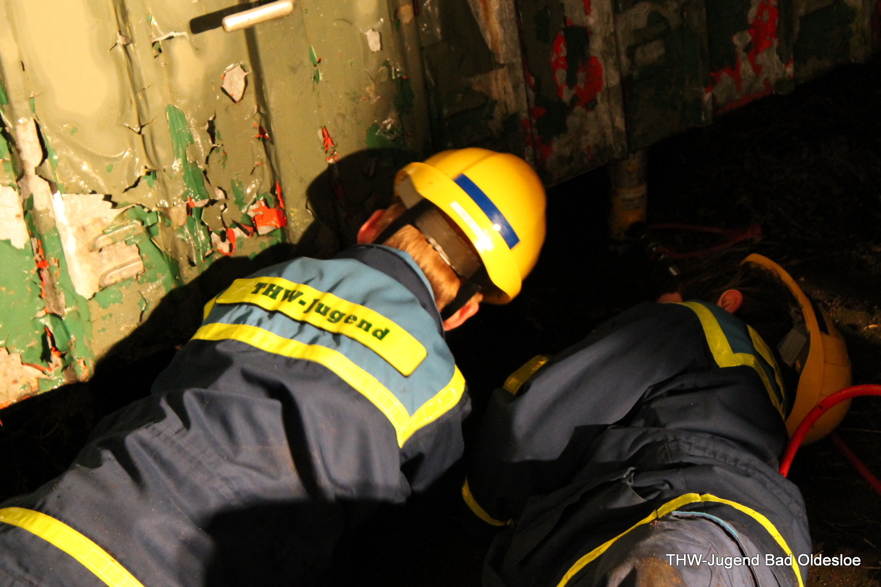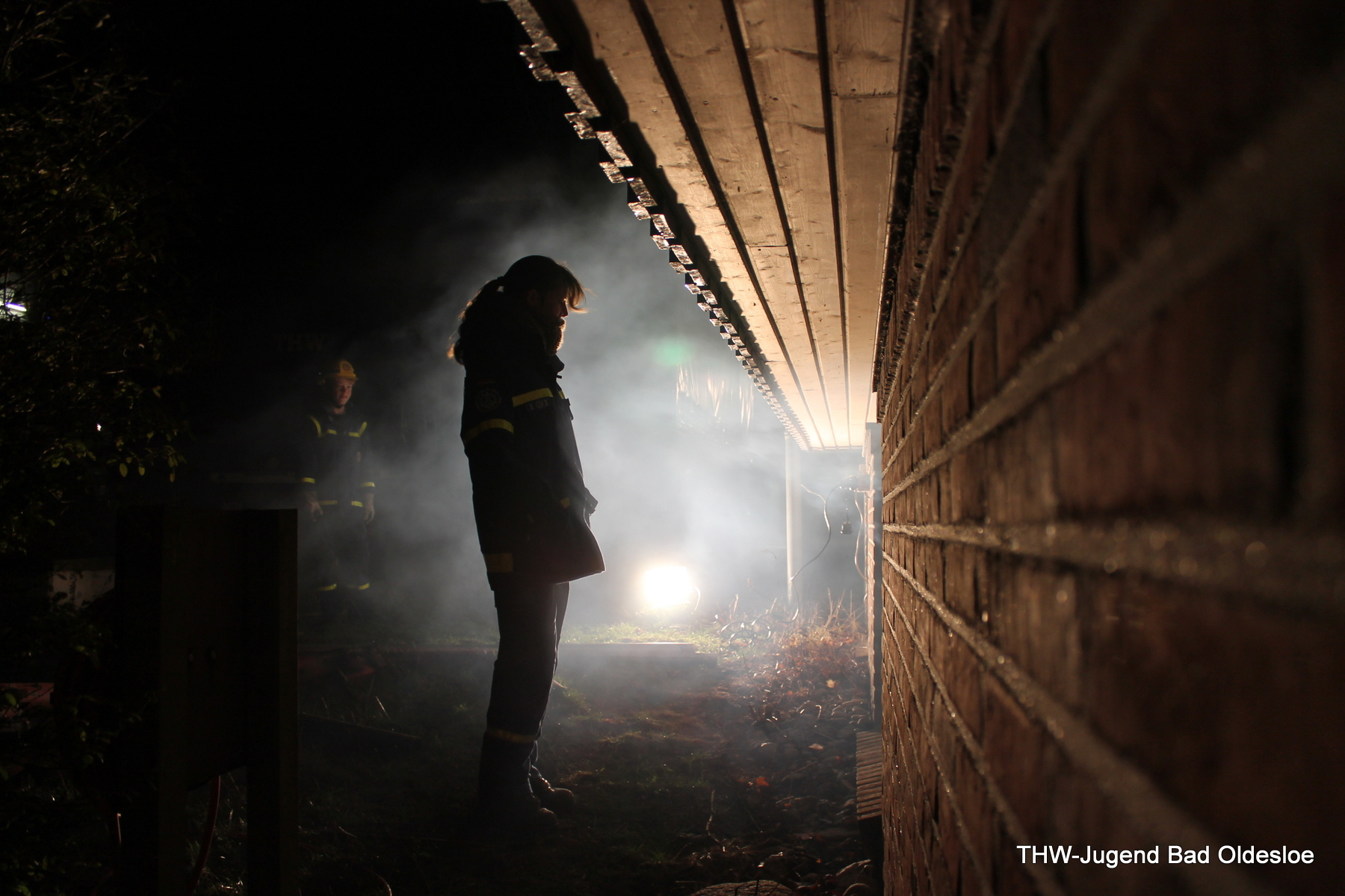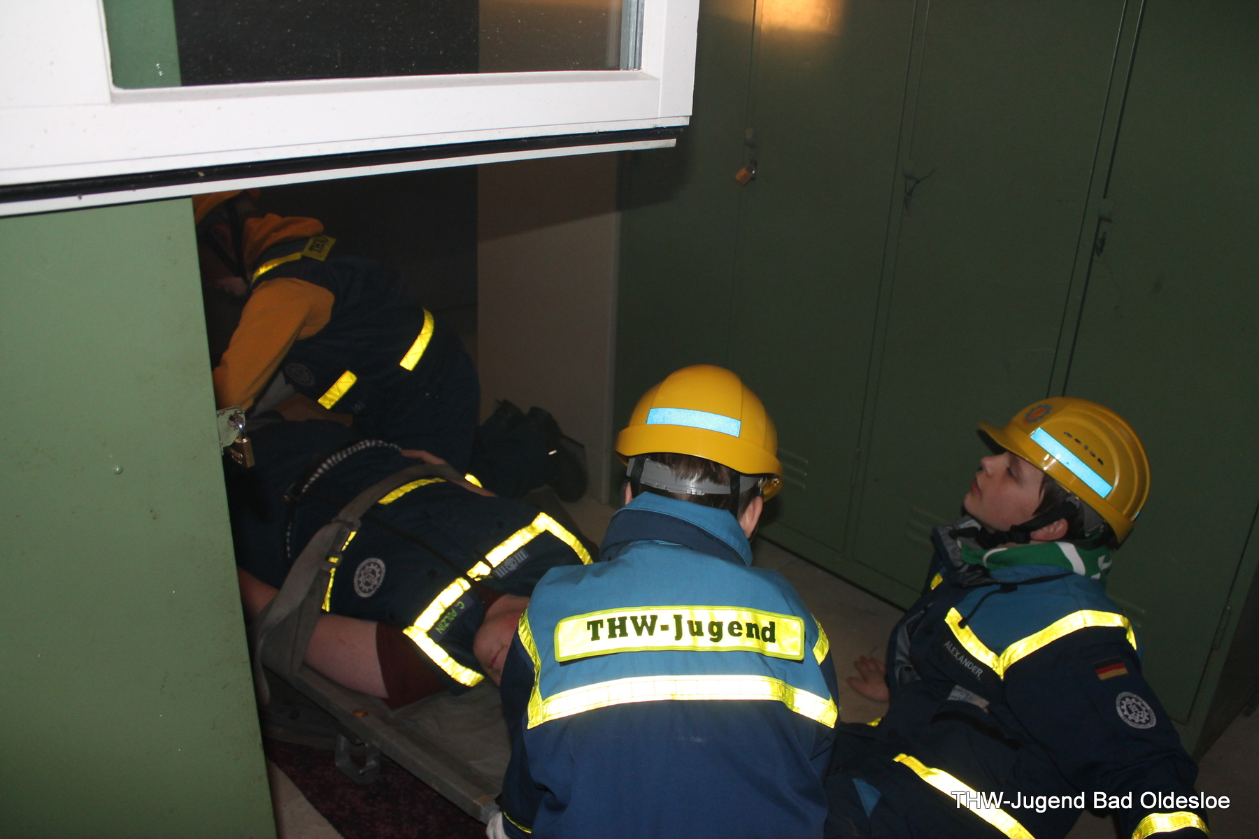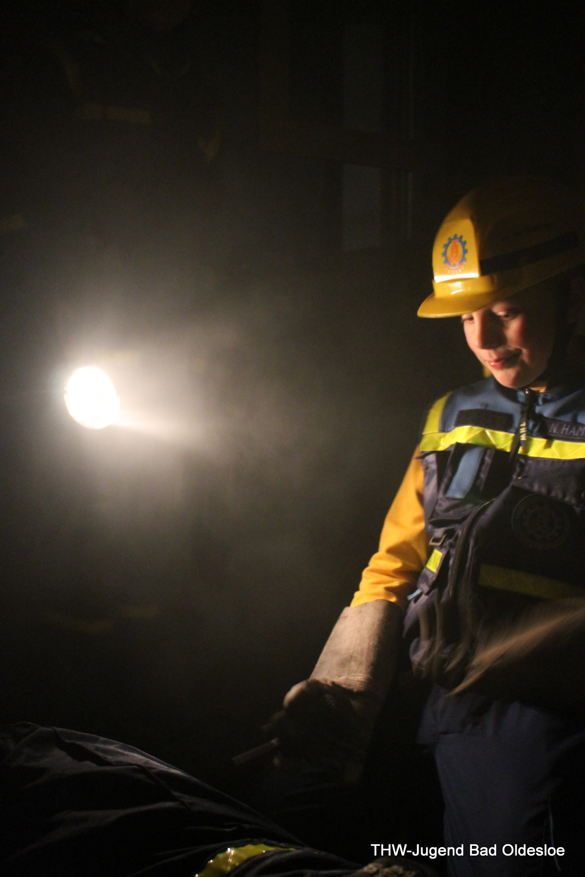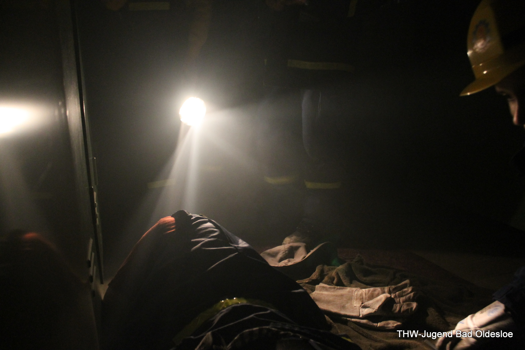 In einem Gebäude kam es zu einer Explosion. In dem Gebäude wurde eine Person vermutet. Aufgrund von Staub herrschte schlechter Sicht im Gebäude selbst. Die Person musste gefunden, versorgt und gerettet werden. Hierbei mussten vorallem die Sichtprobleme und die versperrten Wege überwunden werden.