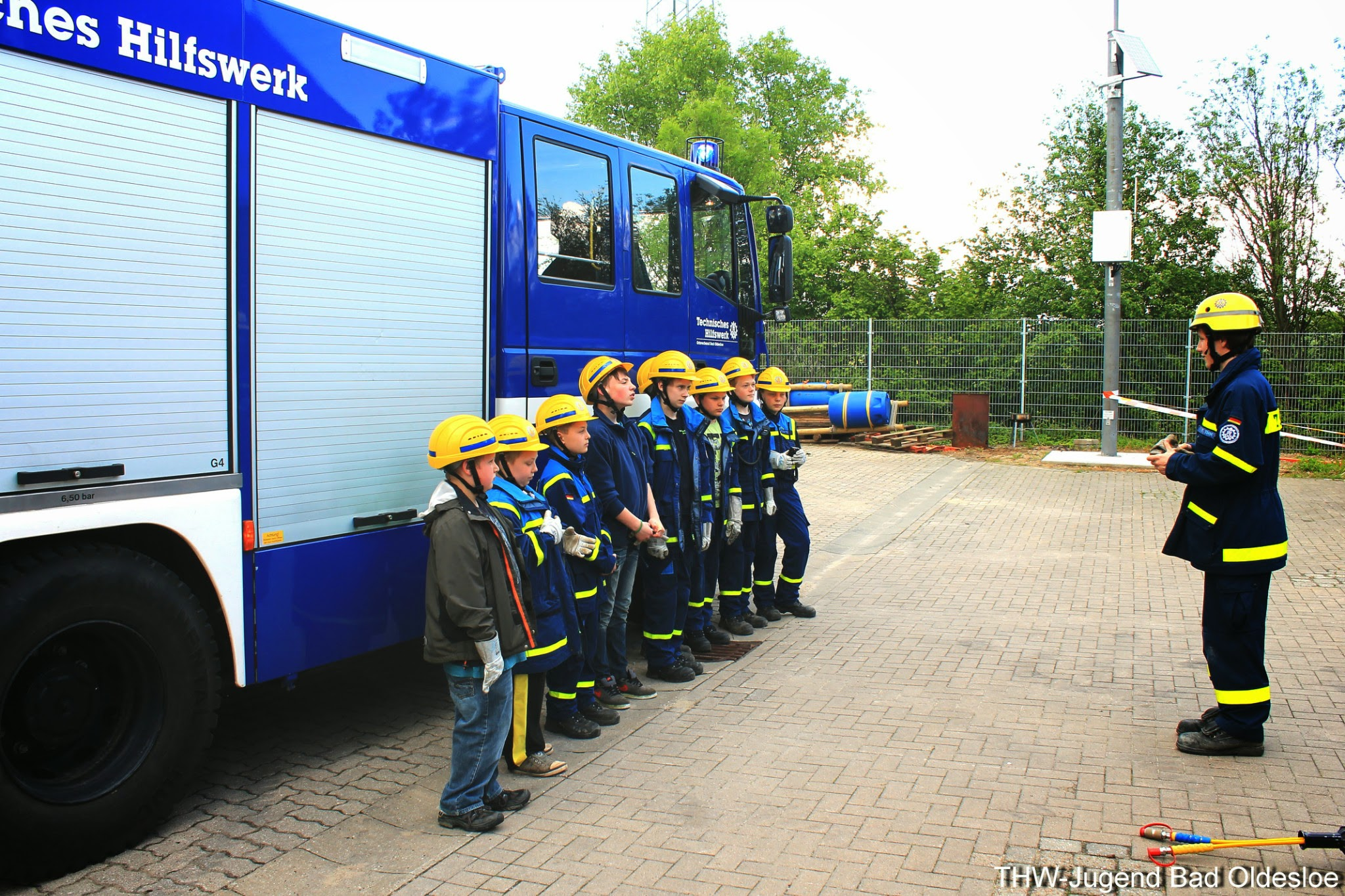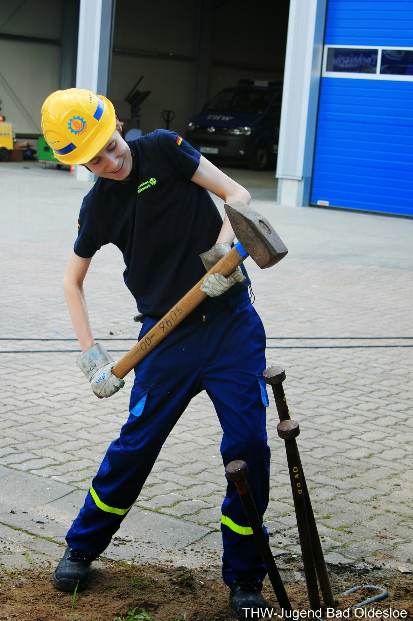 Hier lautete die Aufgabe das Jugendgruppenfahrzeug (MLW) einen kleinen Berg hinaufzuziehen. Zuerst mussten sie einen Festpunkt errichten, der die zuziehende Last auch standhielt. Danach wickelten sie das fünfzehn Meter lange Stahlseil ab und bauten den Greifzug auf. So zogen sie langsam und mit wenig aufgebrachter Kraft das Fahrzeug hinauf. Auch diese Aufgabe war für beide kein Problem.