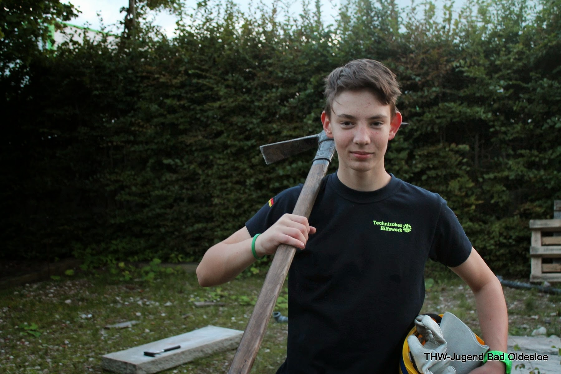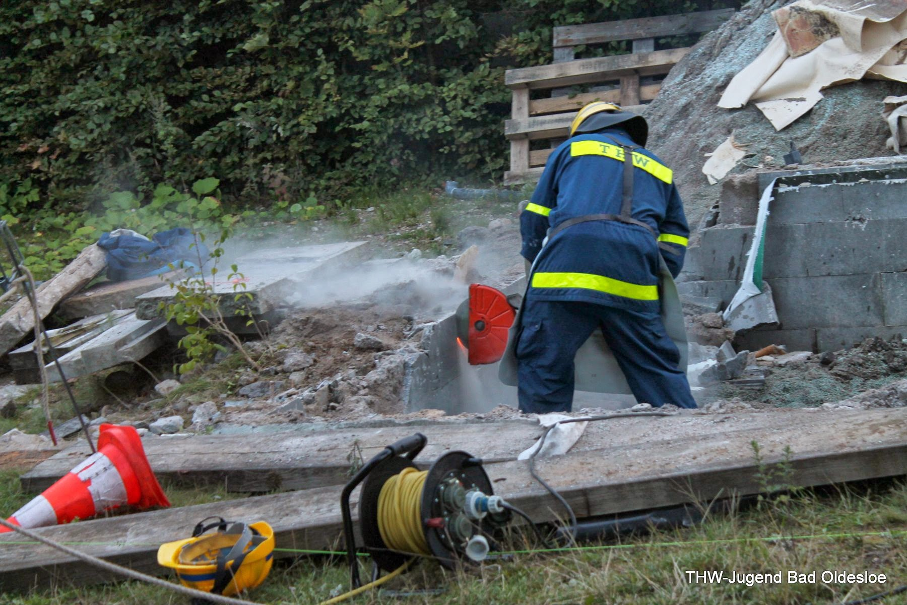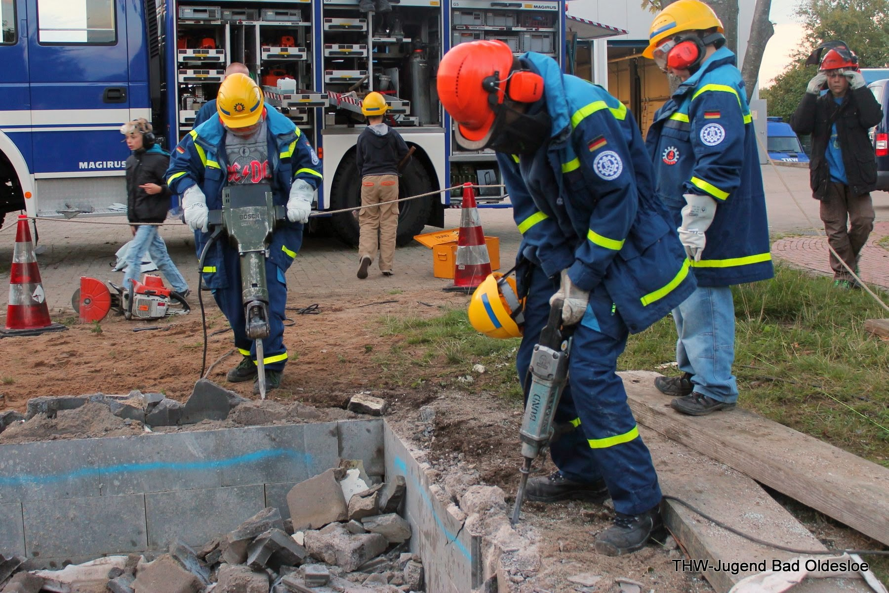 Während die einen sich mit Spitzhacke, Vorschlaghammer und kleineren Hämmern bewaffneten, bekämpften andere den gemauerten Rand des Teiches mit Bohr- und Aufbruchhammer. Trotz des hohen Beliebtheitsgrades der technischen Geräte, wechselten die Jugendlichen sich stetig ab und so bekam jeder mal die Möglichkeit – geschützt mit Helm, Handschuhen, Gehörschutz und Schutzbrille – die Geräte kennenzulernen. Diejenigen die gut mit dem Bohr- und Aufbruchhammer umgehen konnten, halfen den neueren.