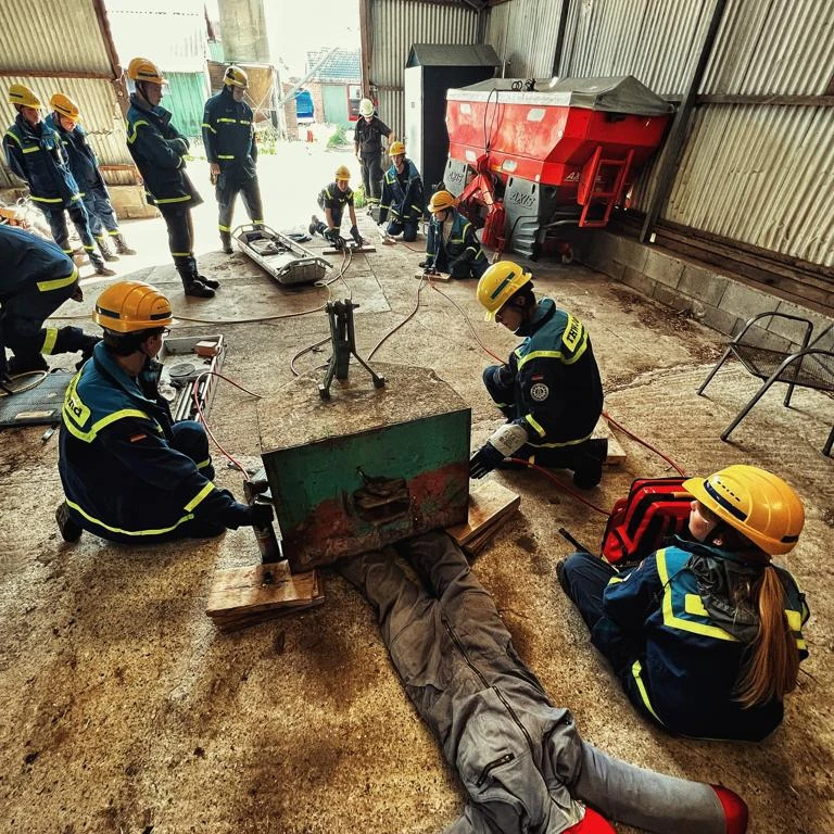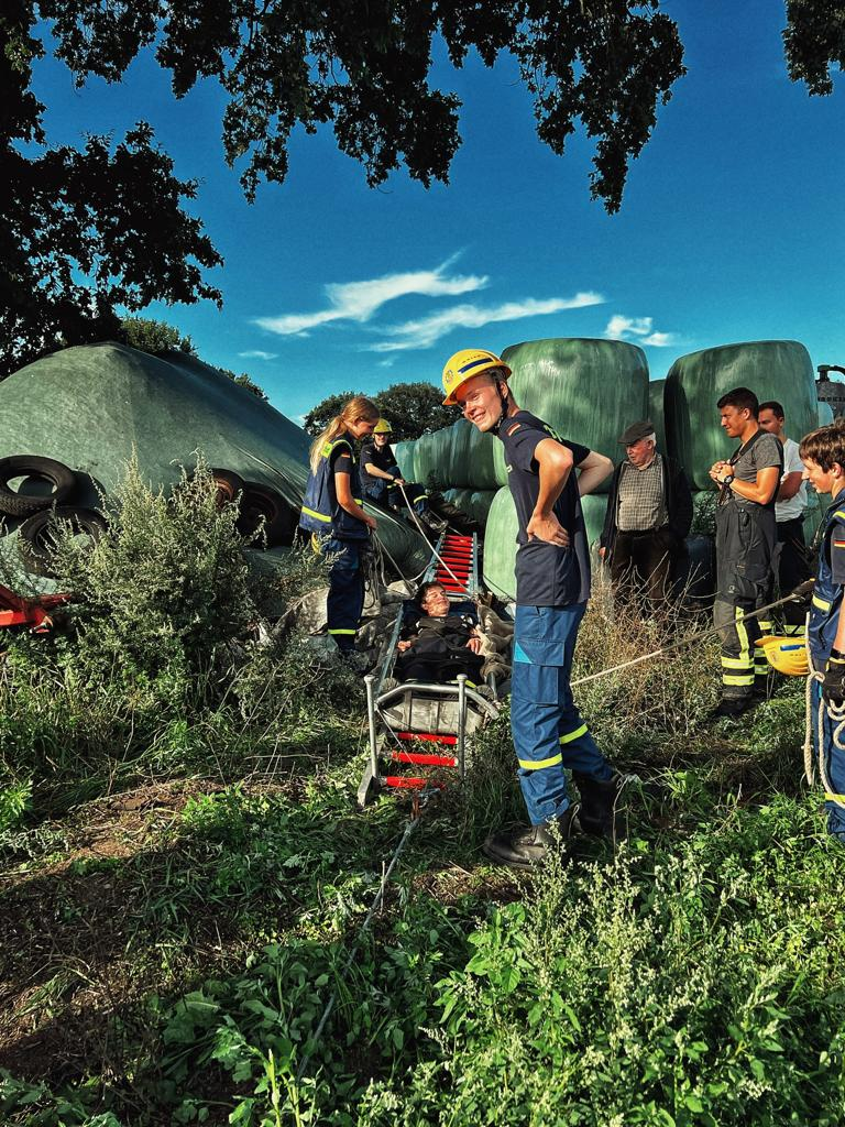 Wir haben mit der Unterstützung der FF Tönningstedt eine Übung durchgeführt, worum es darum ging, Personen aus ungewöhnlichen Lagen zu befreien und zu retten.