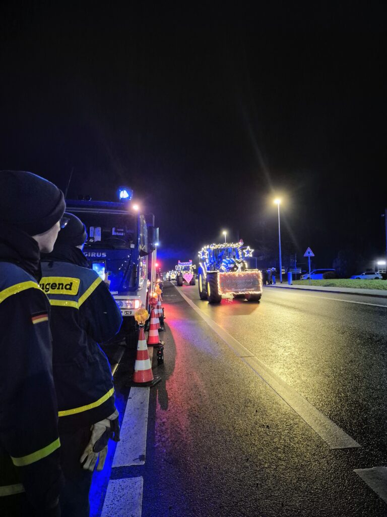 Wie bereits im Vorjahr unterstützten wir die Aktion beim Start durch die Parkplatzkoordination. So stellten wir sicher, dass die festlich beleuchteten Traktoren geordnet, sicher und ohne Verzögerungen ihre Tour beginnen konnten. Ein reibungsloser Ablauf war dabei besonders wichtig, damit der Korso pünktlich und geschlossen starten konnte.